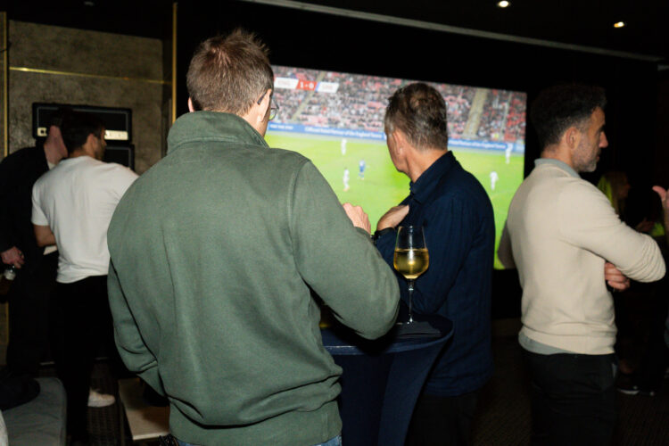 Guests arrived to a private bar and screening room, with welcome drinks and time to connect before kick-off. As the game got underway, the atmosphere felt closer to a boutique sports hospitality box than a typical corporate event. A confident 2–0 win for England gave everyone exactly what they wanted: three points on the board and plenty to cheer about.